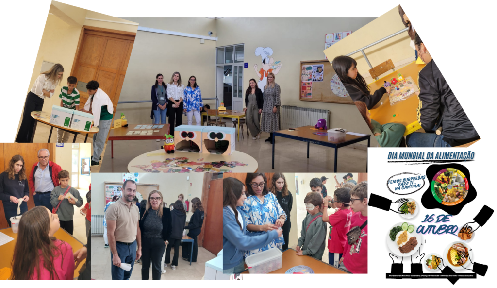 No dia 16 de outubro o Agrupamento de Escolas do Sabugal assinalou o Dia Mundial da Alimentação com diversas atividades dirigidas aos alunos dos diversos níveis de ensino. Tratou-se de assinalar uma data com enorme relevância para a consciencialização da comunidade educativa sobre a importância de uma alimentação saudável, equilibrada e sustentável. Esta atividade foi dinamizada pelo Projeto de Educação para a Saúde (PES), em estreita articulação com a animadora sociocultural do Agrupamento e contou com a preciosa colaboração das Sras. enfermeiras da UCC, Carla Martins e Liliana Nunes, e da Câmara Municipal do Sabugal, através do apoio da nutricionista Felismina Rito, cuja intervenção regular junto dos alunos e restante comunidade educativa tem contribuído significativamente para reforçar mensagens essenciais sobre escolhas alimentares conscientes e saudáveis. A presença e envolvimento de diferentes entidades sublinha o papel crucial das parcerias locais na promoção da saúde e bem-estar da comunidade escolar. Destacamos, com especial apreço, a presença da Sr.ª Vice-Presidente da Câmara Municipal do Sabugal, Drª Sílvia Nabais, que, em representação do executivo camarário, partilhou o momento do almoço com os alunos, simbolizando a proximidade e o compromisso do município com a educação, a saúde e a qualidade de vida das crianças e jovens do concelho. Este gesto foi não só uma honra para o nosso Agrupamento, como também um forte exemplo do impacto positivo da colaboração entre escola e autarquia na construção de uma comunidade mais justa, informada, participativa e saudável.