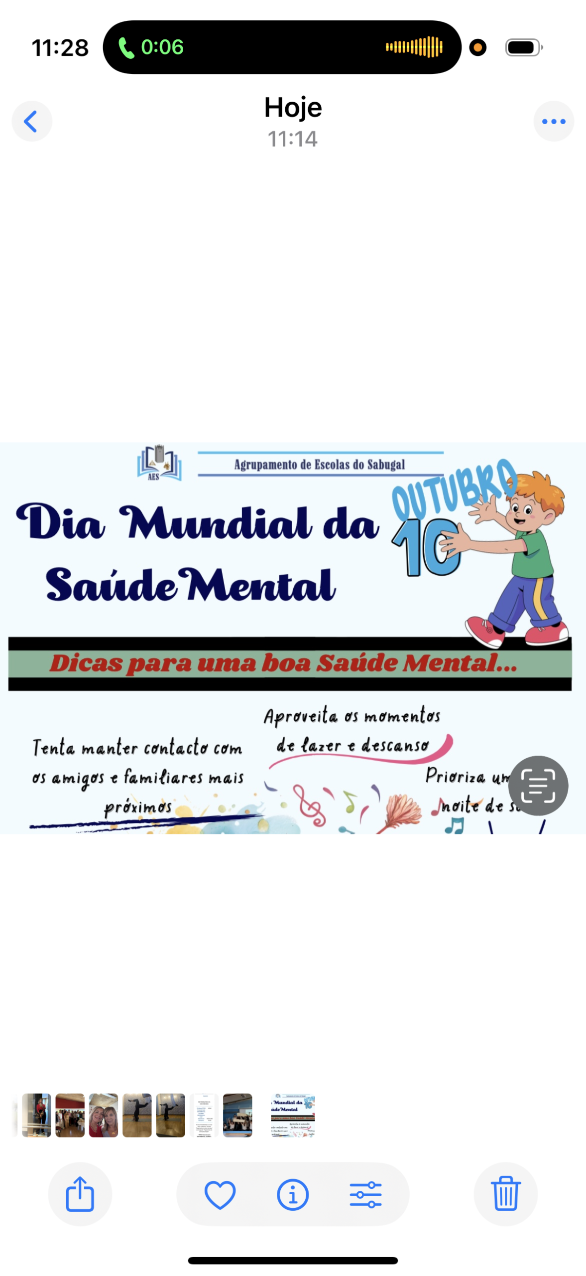Para assinalar o Dia Mundial da Saúde Mental, o Projeto de Educação para a Saúde (PES), através da coordenadora Alcina Barata, em parceria com o Serviço de Psicologia e Orientação (SPO), representado pela psicóloga Beatriz Guerra, e com o apoio da Animadora Sociocultural, Tania Teixeira, promoveu uma iniciativa criativa e impactante: a apresentação de uma música coreografada, por parte de alguns alunos do 3º ciclo e secundário, sobre as implicações do uso desajustado do telemóvel, culminando num flashmob. Esta atividade teve como principal objetivo sensibilizar os alunos para a importância de um uso equilibrado das tecnologias e para o impacto que o excesso de tempo de ecrã pode ter na saúde mental, nas relações interpessoais e no bem-estar emocional. Através da arte e da expressão corporal, foi transmitida uma mensagem positiva de consciência, equilíbrio e autocuidado, reforçando o papel da escola como espaço de promoção da saúde e do desenvolvimento integral dos jovens. Porque cuidar da saúde mental é tão importante como cuidar do corpo, este dia foi uma oportunidade para parar, pensar e sentir — juntos.