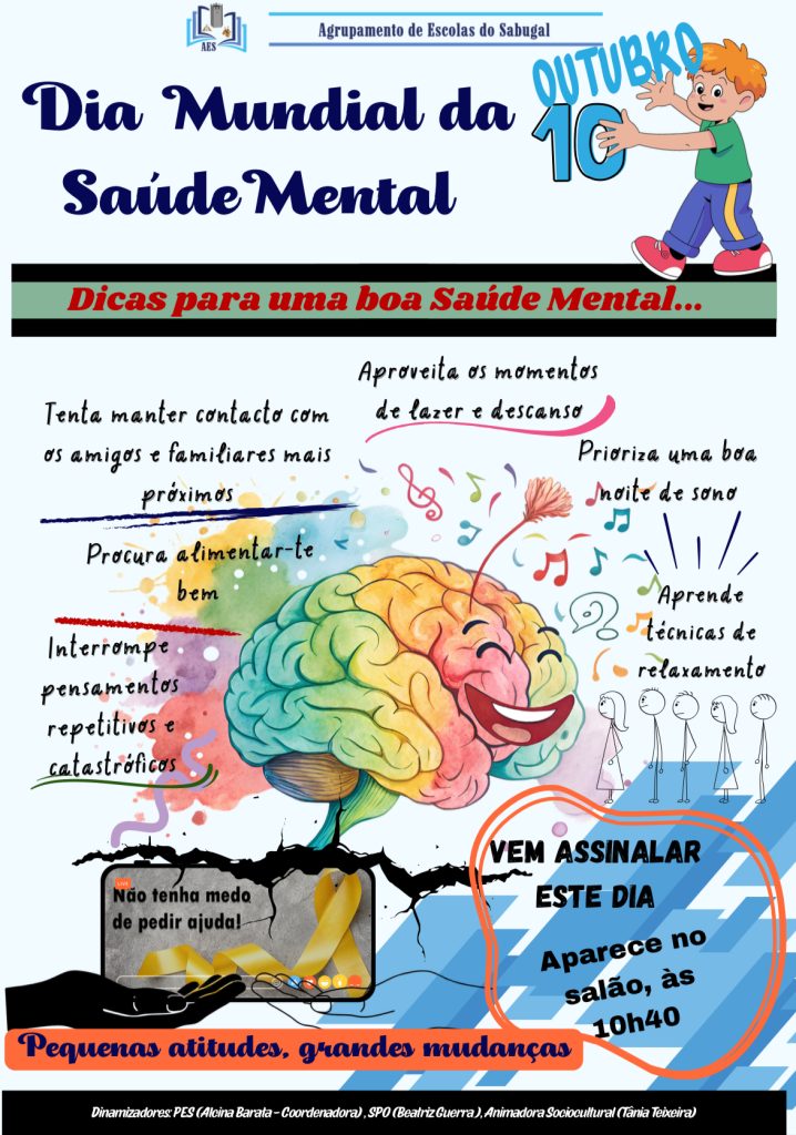 Para assinalar o Dia Mundial da Saúde Mental, o Projeto de Educação para a Saúde (PES), através da coordenadora Alcina Barata, em parceria com o Serviço de Psicologia e Orientação (SPO), representado pela psicóloga Beatriz Guerra, e com o apoio da Animadora Sociocultural, Tania Teixeira, promoveu uma iniciativa criativa e impactante: a apresentação de uma música coreografada, por parte de alguns alunos do 3º ciclo e secundário, sobre as implicações do uso desajustado do telemóvel, culminando num flashmob. Esta atividade teve como principal objetivo sensibilizar os alunos para a importância de um uso equilibrado das tecnologias e para o impacto que o excesso de tempo de ecrã pode ter na saúde mental, nas relações interpessoais e no bem-estar emocional. Através da arte e da expressão corporal, foi transmitida uma mensagem positiva de consciência, equilíbrio e autocuidado, reforçando o papel da escola como espaço de promoção da saúde e do desenvolvimento integral dos jovens. Porque cuidar da saúde mental é tão importante como cuidar do corpo, este dia foi uma oportunidade para parar, pensar e sentir — juntos.